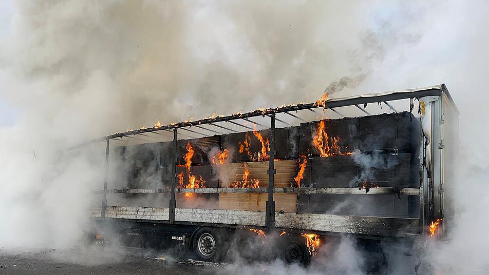 Bei dem Brand eines mit Holz beladenen Lastwagens auf der A72 ist ein Schaden von rund 250.000 Euro entstanden. Der Fahrer aus Lettland sei zuvor am Mittwochmorgen (7. Mai 2025) um kurz nach 6 Uhr bei Feilitzsch (Kreis Hof) mit einiger Wucht über das abgelöste Rad eines anderen Lastwagens gefahren, teilte die Polizei mit. Dabei sei der Motorraum seiner Sattelzugs beschädigt worden - den Angaben zufolge stieg weißer Rauch aus diesem auf. Der 40-Jährige habe den 40-Tonnen schweren Holztransporter noch geistesgegenwärtig auf den Standstreifen fahren und sich in Sicherheit bringen können.