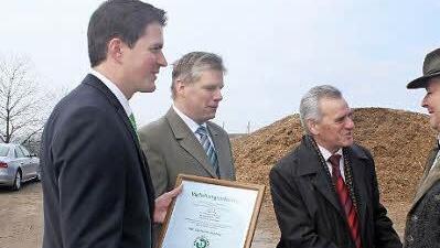 Die Kompostbetreiber des Landkreises Kronach erhielten am Dienstagvormittag auf dem Kompostplatz in Posseck von der Bundesgütegemeinschaft Kompost (BGK) e.V. das "RAL-Gütezeichen Kompost". Somit haben die Kompostbetreiber den Nachweis zur Durchführung der Qualitätssicherung von Dünge- und Bodenverbesserungsmitteln aus Recyclingprozessen der Kreislaufwirtschaft.