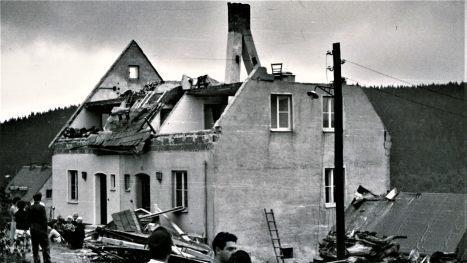 Immer wieder sorgen gewaltige Unwetter im Frankenwald für eine ungeheure Zerstörungskraft, mit der Folge, dass tausende Fichten entwurzelt wurden. Doch das Jahrhundertunwetter am 1. August 1958 stellte alles Bisherige in den Schatten. Nicht nur, dass riesige Waldflächen verwüstet wurden, sondern vor allem die Gebäudeschäden waren beträchtlich. Selbst die Stromversorgung und der Fernsprechverkehr wurden in Mitleidenschaft gezogen.