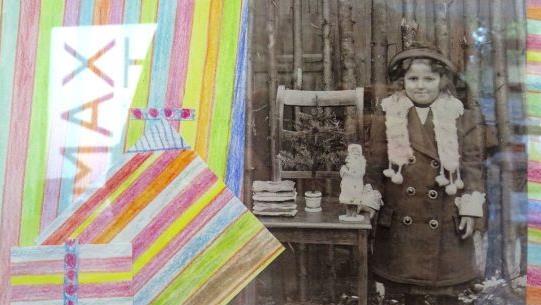 Als Basis dienen die historischen Kinderbilder, die von den heutigen Schülern farbenfroh in einen grafischen Rahmen gesetzt wurden. "Mit den geometrischen Vorgaben kann jedes Kind mitmachen" so die Initiatorin, die dazu didaktische Regeln vorgegeben hat. Allerdings ist schon beachtlich, mit welcher Kreativität sie umgesetzt wurden.