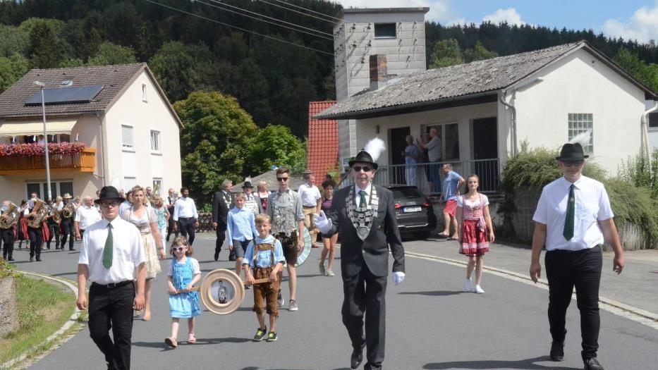Am Festzug nahmen teil die Schützenvereine Kleinkaliber SV Förtschendorf, SV Friedersdorf, SG Haßlach/T., SV Rennsteig Steinbach/W., Zimmerstutzen-SG Schützenlust Pressig, Privilegierte SG SV Ludwigsstadt, Freihand-Schützen Bad Staffelstein sowie mehrere Fahnenabordnungen der örtlichen Vereine. Nach diesem farbenfrohen Spektakel spielte der Musikverein Rothenkirchen im Festzelt unter dem Motto "so schön klingt Blasmusik" auf. Die Königsproklamation findet am Sonntagabend statt.