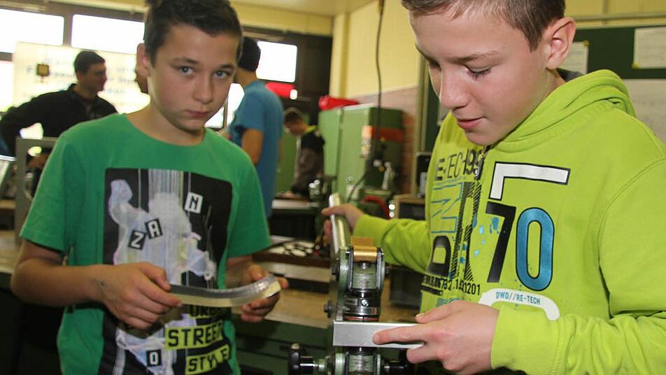 Jannik Titze ist erst 13 Jahre alt. Hochkonzentriert steht der Achtklässler, der die Max-Hundt-Schule besucht, in der Werkstatt des beruflichen Schulzentrums und versucht aus Kupferdraht nach einer Vorlage ein Flugzeug zu biegen. Lisa Köstner (20), eine Auszubildende in der Berufsrichtung Mechatronik, erklärt die Details. "Mechatroniker ist eigentlich kein Männerberuf mehr. In der Industrie gibt es unglaublich viele Hilfsmittel, der Beruf ist nicht anstrengend", erklärt sie Jannik Titze und jeder merkt ihr an, dass sie ihren Traumberuf gefunden hat. Lisa Köstner kann diesen Beruf nur empfehlen. Sie ist im zweiten Lehrjahr und lernt bei Glen Dimplex. "Ich weiß noch gar nicht, ob ich handwerklich geschickt bin", sagt Jannik Titze und möchte genau das bei der Ausbildungsmesse herausfinden. Die ersten beiden Biegungen für das Flugzeug hat er schon getätigt. Seine Konstruktion sieht allerdings nicht ganz so akkurat aus wie die von Lisa Köstner. "Ich denke, man muss schon ein bisschen ein Händchen dafür haben", sagt Titze offen und ehrlich. Er war schon im vergangenen Jahr bei der Ausbildungsmesse. "Die Ausbildungsmesse ist die Gelegenheit, um sich verschiedene Berufe anzuschauen, um sich mal die Firmen anzuschauen", sagt Jannik Titze.