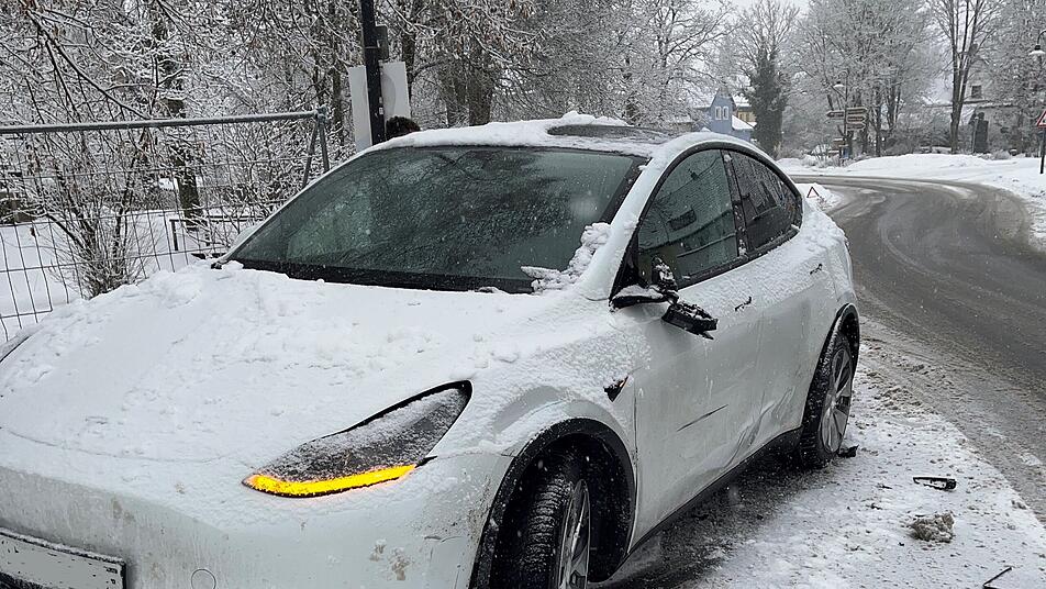 Der junge Paketfahrer war gegen 8.40 Uhr auf der Wirsberger Straße in Richtung Hauptstraße unterwegs, als er auf der winterlichen Fahrbahn die Kontrolle über sein Fahrzeug verlor. In der dortigen Rechtskurve musste er seinen Fahrstreifen verlassen und stieß mit dem Tesla einer entgegenkommenden 32-Jährigen zusammen.