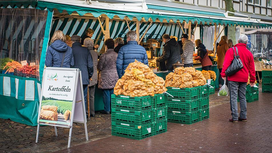 Im Bereich „Griesenbrock-Imbiss/Alte Feuerwache“ bieten die regionalen Händler am Samstag, 26. November 2022, ab 7 Uhr frisches Obst und Gemüse, Fisch und Fleisch sowie Pflanzen und viele weitere Produkte aus eigener Herstellung an.