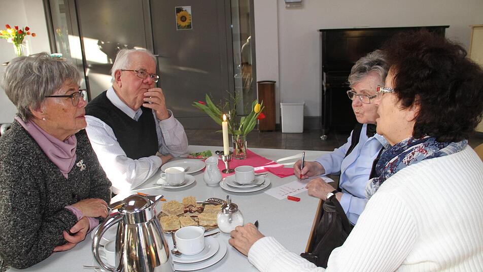 Draußen ist es ungemütlich, drinnen liegt Kaffeeduft in der Luft, stehen Platten mit Kuchen auf den Tischen und ein großer Strauß Tulpen auf einem Nebentisch. Trotz des widrigen Wetters haben sich am Donnerstagnachmittag rund ein Dutzend Seniorinnen und Senioren zum ersten Café "Lebensfreude" in dem Saal des evangelischen Gemeindehauses eingefunden.