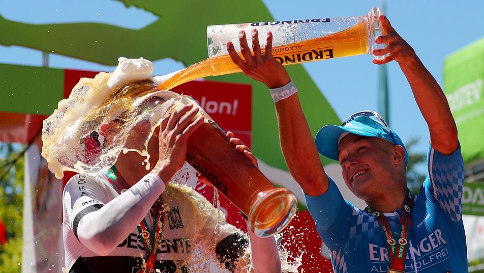 Die beiden Deutschen freuten sich wie die Kinder im Zielbereich: Kienle, der Welt- und Europameister über die lange Distanz, über seinen letzten ihm noch fehlenden Sieg beim stimmungsmäßig wohl besten Rennen weltweit. Die Bier- wie die Champagner-Dusche nach der Stadion-Siegerehrung ließ der 33-Jährige aus Mühlacker gerne über sich ergehen.