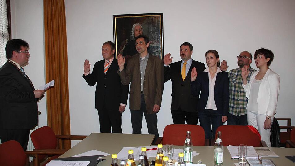 Neben Dechant waren noch fünf weitere Stadträte und vier Ortssprecher ausgeschieden. Dauer würdigte auch die Verdienste der Stadträte Jochen Bauer (CSU/2008-2014), Günter Herold (CSU/2002-2014), Karlheinz Göring (CSU/2002- 2014), Joachim Kremer (Grüne/2011-2014) und Michael Müller (CSU/2008-2014) sowie der Ortssprecher Michael Bienlein (Siedamsdorf), Dieter Herbst (Geutenreuth), Hans Knauer (Weiden), Reinhard Schütz (Kleinziegenfeld) und Alfons Spörlein (Buckendorf). Die Ausgeschiedenen wünschten ihren Nachfolgen ein glückliches Händchen bei ihrer Stadtratsarbeit zum Wohle von Weismain und seinen Bürgern. Bürgermeister Udo Dauer vereidigte die neuen Stadträte Matthias Müller, Jürgen Dietz, Michael Bienlein, Jasmin Schardt, Jochen Schäfer und Julia Spörlein.
