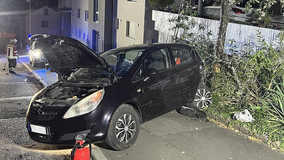 Zu einem schweren Unfall kam es in der Nacht auf Mittwoch (20. August 2025) in Lohr am Main. Ein Auto fuhr rückwärts gegen eine Straßenlaterne und einen Baum.