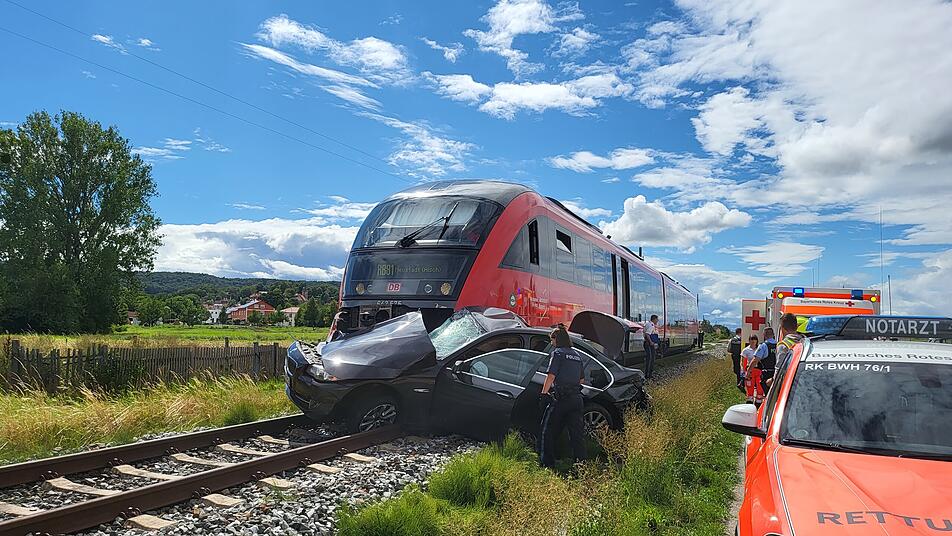 Autofahrer bei Unfall mit Zug in Burgbernheim schwer verletzt - Bahnübergang nicht durch Schranken gesichert