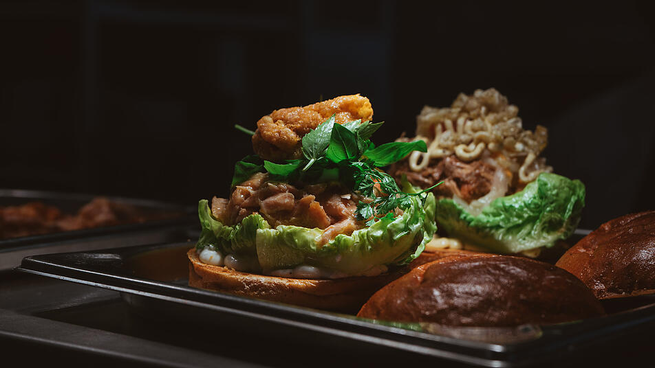 Der "Fränk'ness Beef Burger" indes sei angereichert mit Trüffel-Mayonnaise, Salatherz und Lauch-Chili-Chutney. Noch bis Samstag (1. April 2023) gibt es im Fränk'ness mittags gebe es "immer den Beef-Burger und täglich wechselnd einen gezupften Fränk’ness Burger dazu", so Betriebsleiterin Sabine Weiß.