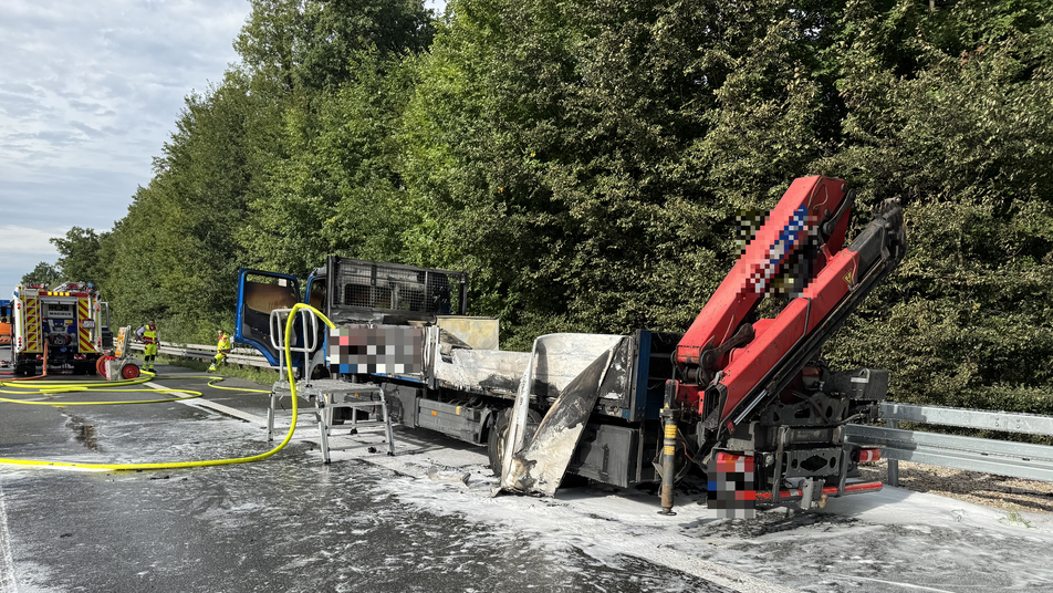 Auf der A9 bei Nürnberg ist am Dienstagvormittag (9. September 2025) ein Lastwagen vollständig ausgebrannt.