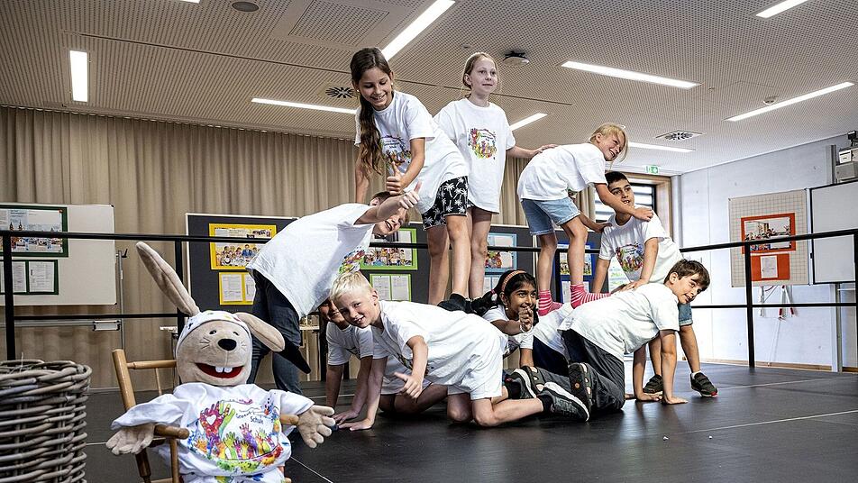 Neben den Rednerinnen und Rednern kamen immer wieder die Kinder zu Wort und trugen zum Beispiel den Artikel der Menschenrechte vor, bauten eine Menschenpyramide – die nur als Team funktioniert – oder zeigten den Gästen, was „Wir sind G-R-E-T-E-L“ bedeutet. Anschließend erprobten sich Gäste und Kinder als Teamplayer beim „Schwungtuchspiel“. Dann nahmen die Kinder die Gäste mit auf einen „Gallerywalk“, in dem die Lernmaterialien eingehen begutachtet werden konnten.