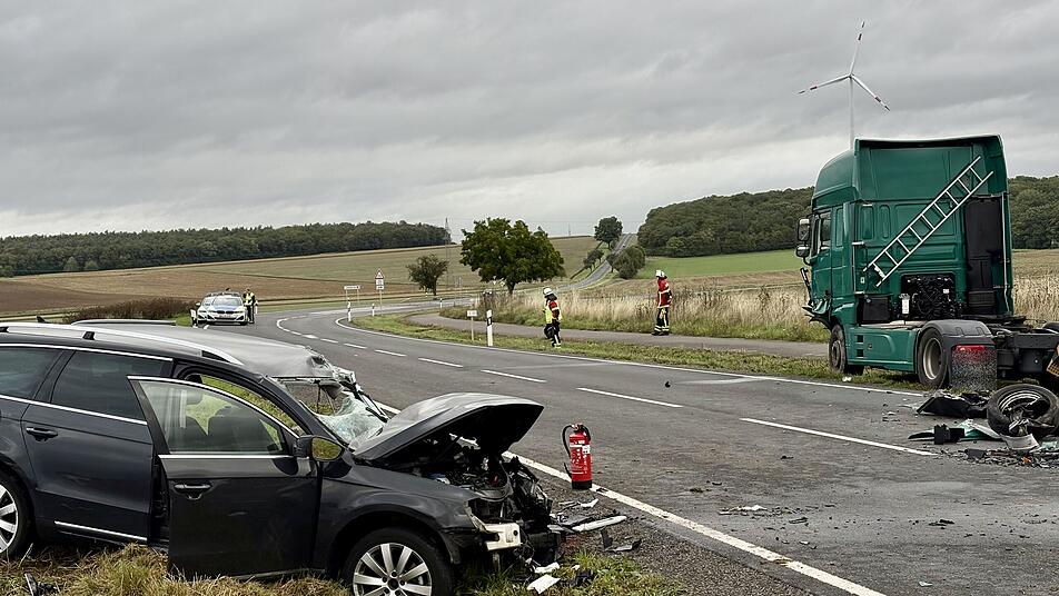 Am Montagmorgen (15. September 2025) kam es auf der B19 bei Werneck im Kreis Schweinfurt zu einem heftigen Zusammenstoß zwischen einem Auto und einem Lkw. Davon berichtete die örtliche Polizei.