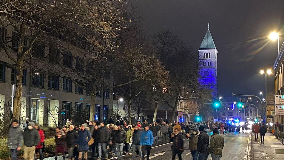 Bei der nicht angemeldeten Demonstration wurden am Sonntag mehrere Menschen verletzt. Die Stimmung kippte im Laufe des Abends - und so wurde aus einem zunächst friedlichen Protest eine teils sehr aggressive und gewaltvolle Demo. "Unsere Einsatzkräfte waren bereits gezwungen, gegen aggressive Versammlungsteilnehmer Schlagstock und Pfefferspray einzusetzen. Wir fordern alle Teilnehmer auf, friedlich von ihrem Grundrecht Gebrauch zu machen und die Regeln einzuhalten", twitterte die Polizei Unterfranken am frühen Sonntagabend.