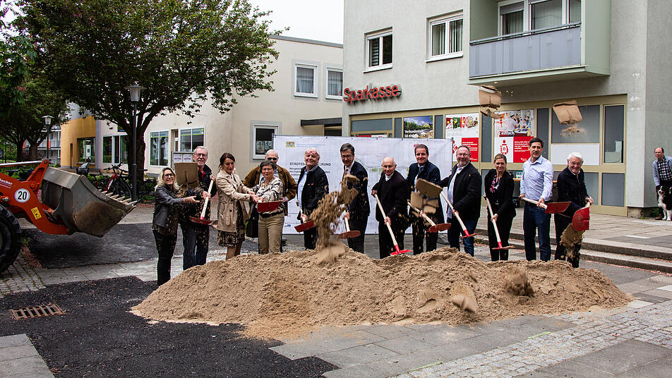 Ein großer Abstimmungsbedarf und insgesamt eine große Projektdimension zeichnen die Platzumgestaltung aus, die laut Schneider erst durch den Sonderfonds „Innenstädte beleben“ realisierbar wurde. Bei Baukosten von rund 2,1 Millionen Euro, sind die 80 % Förderung der Regierung von Unterfranken ein „großer Segen“. Des Weiteren freute man sich nach einer erfolglosen nationalen Ausschreibung, in der zweiten Runde in einem beschränktem Verfahren mit der Firma Würzburger Pflasterbau einen kompetenten Partner aus der Region verpflichten zu können. Claus Köhler vom Quartiersbüro moderierte den Spatenstich, im März 2024 könnte bereits eine Einweihungsfeier folgen.