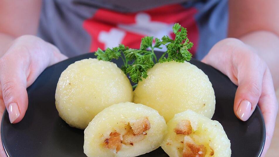- Frisches Wasser in einem großen Topf aufkochen und kräftig salzen. Eine Messerspitze Kartoffelstärke ins Kochwasser geben – das verhindert das Zerfallen der Klöße und sorgt für einen schönen Glanz. Die Klöße vorsichtig ins siedende Wasser legen. Die ersten 5 Minuten zugedeckt leicht köcheln lassen, danach den Deckel halb öffnen oder abnehmen.