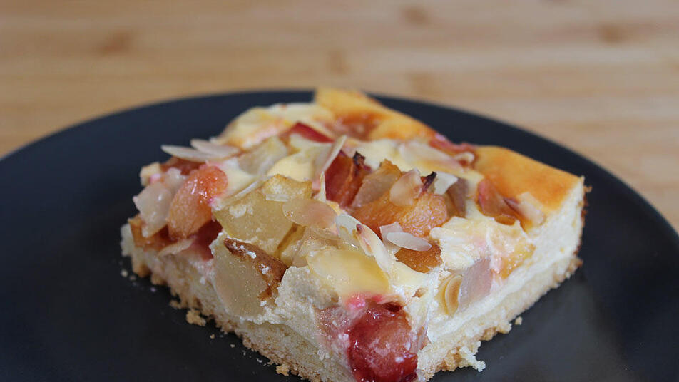 - Die Quarkmasse verteilen wir nun gleichmäßig auf dem Kuchenboden.