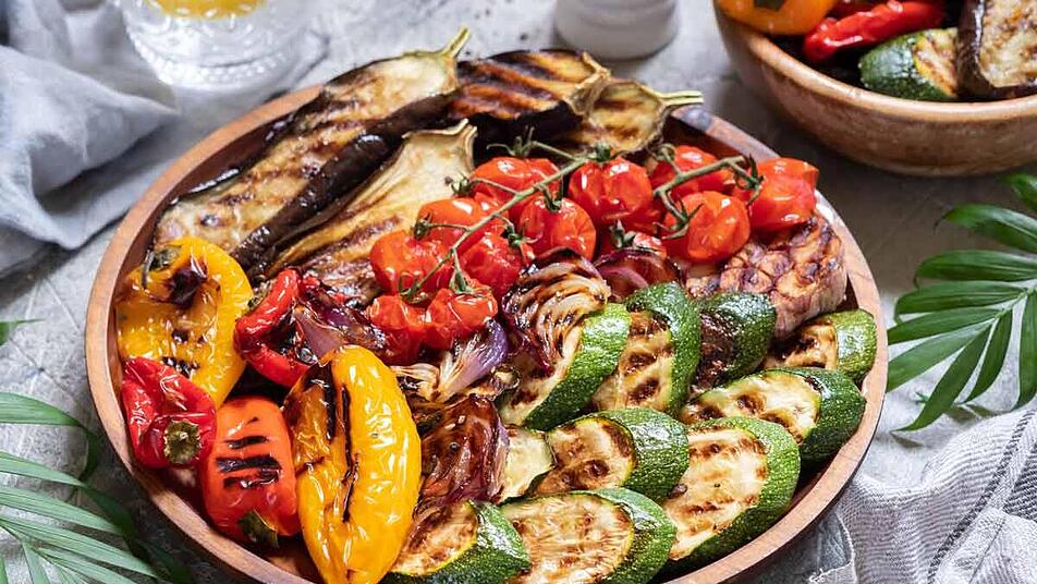 - Das Gemüse inkl. Zwiebel und Knoblauch in einer großen Schüssel vermengen. Olivenöl mit Gewürzen und anschließend mit dem Gemüse vermischen. Für etwa 30 Minuten marinieren.