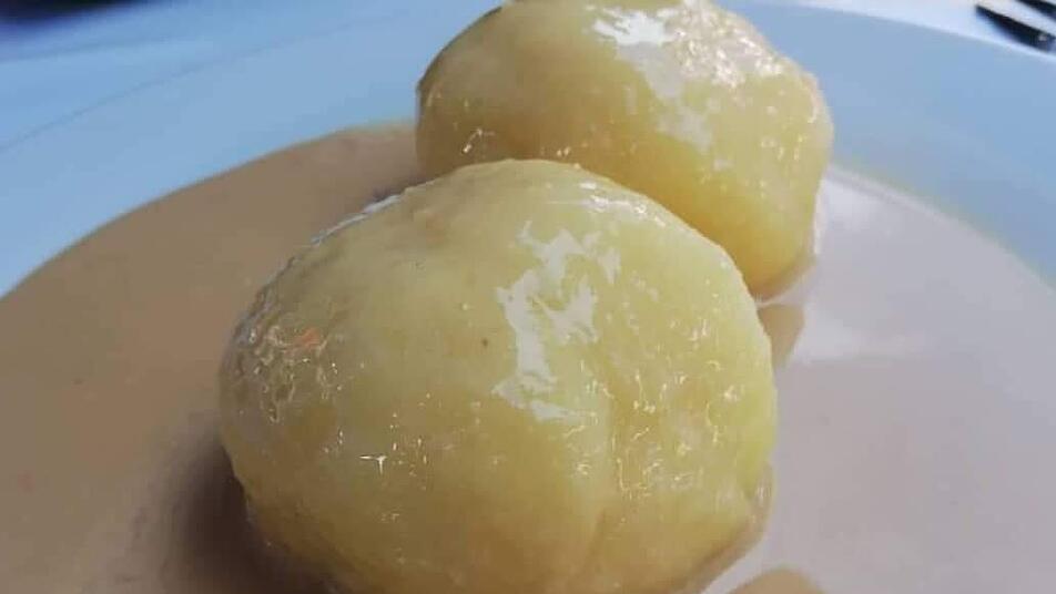 - Den noch heißen Brei mit den geriebenen Kartoffeln vermischen. Wenn man die Masse gerade noch formen kann, ist die Konsistenz perfekt. Mit nassen Händchen Bällchen formen, die Brotstücke hineindrücken, in heißes Salzwasser geben und ziehen lassen. Die Klöße sind fertig, wenn sie schwimmen.