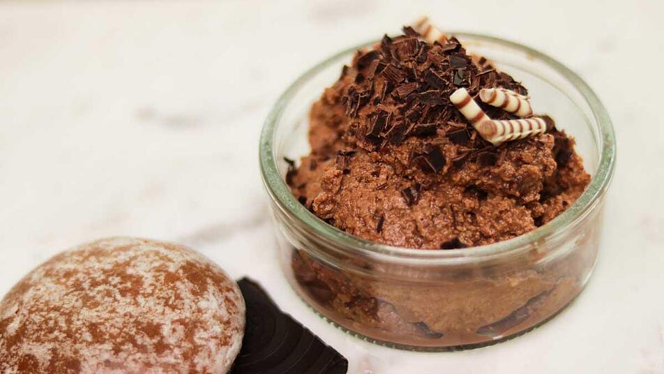 - Die Masse abkühlen lassen und anschließend die Sahne schlagen. Dann unter die Lebkuchen-Schoko-Masse heben.