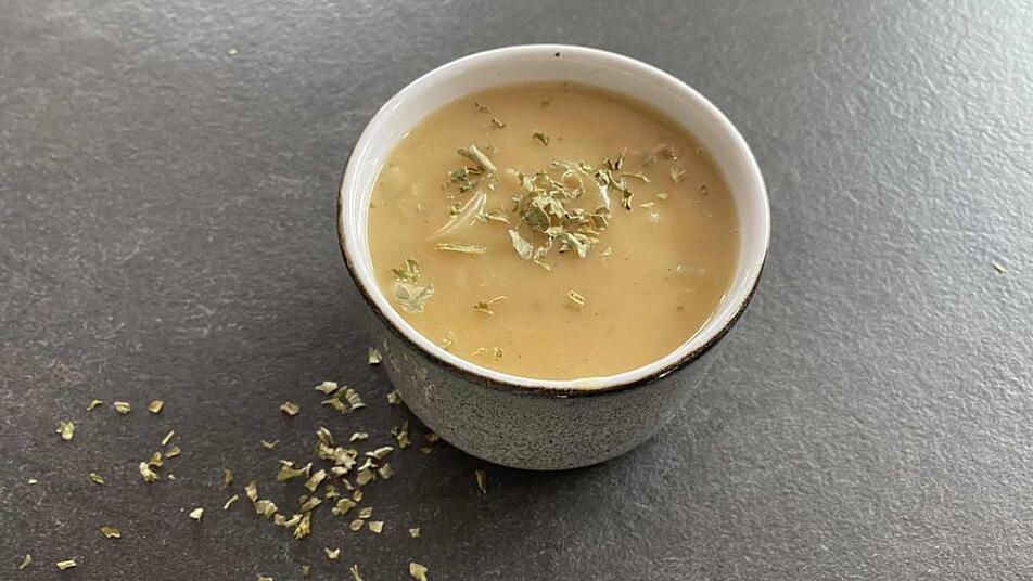 - Die Zwiebeln dann mit in den Topf geben und anrösten. Dann das Mehl dazugeben und alles umrühren, bis sich keine Klumpen mehr darin befinden. Anschließend die Gemüsebrühe dazugeben. Alles verrühren und kurz aufkochen lassen.