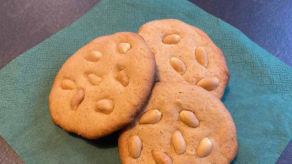 - Nun je nach Belieben ein paar Erdnüsse auf den Keks streuen.