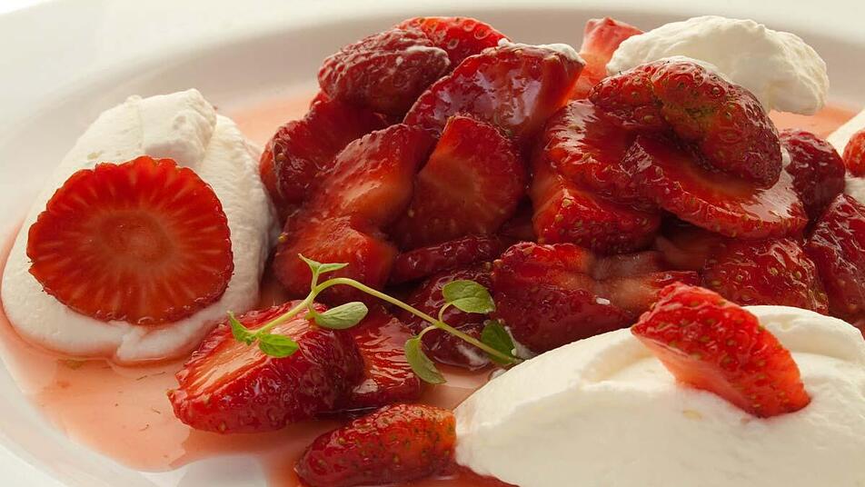 - Das Erdbeerkompott zusammen mit der Schlagsahne auf Tellern anrichten und servieren.