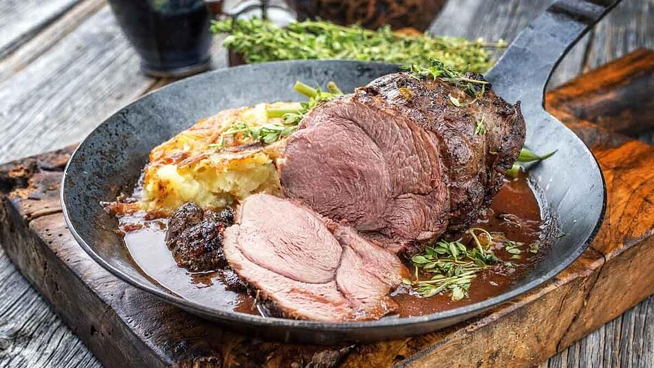 - Jetzt kannst du den Braten aus dem Ofen nehmen. Stelle das Fleisch warm und siebe den Bratenfond ab. Lasse ihn dann aufkochen und koche ihn eventuell auch etwas ein. Schmecke die Soße anschließend mit Salz und Pfeffer ab.