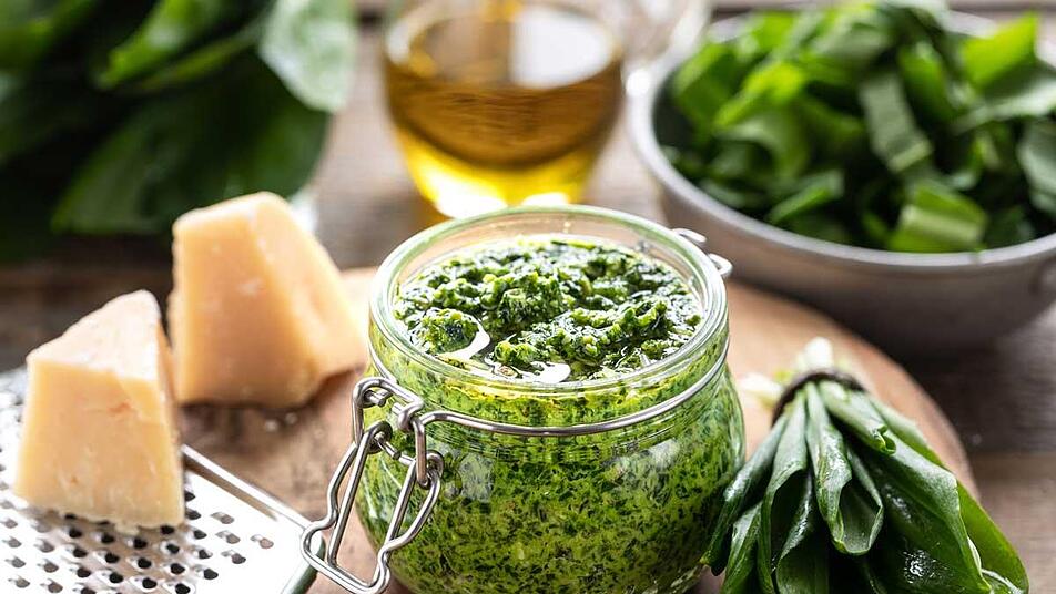 Wir bewahren unser selbstgemachtes Pesto am liebsten in Weck-Gläsern* auf.