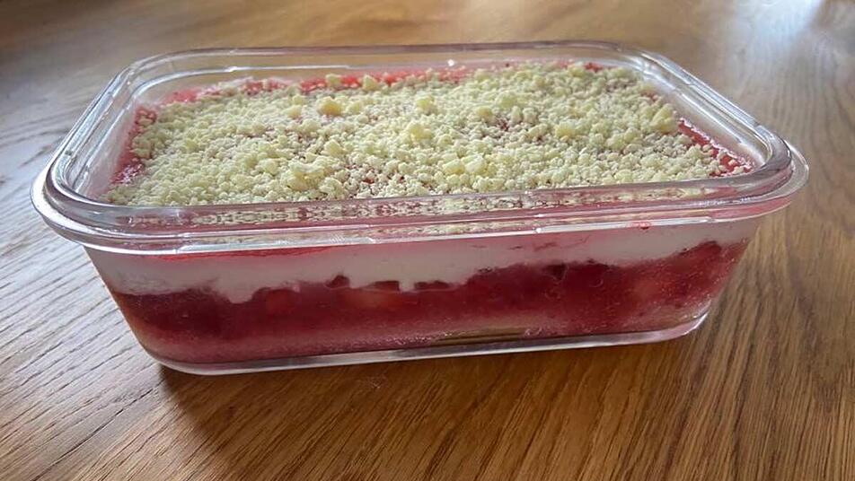 - Nun eine Auflaufform (am besten 24x18 cm) hernehmen und deren Boden mit einem Teil der Löffelbiskuits belegen. Die Biskuits anschließend vollständig mit der Erdbeersoße bedecken und anschließend einige Erdbeerstücke darauf verteilen. Zuletzt noch mit einer Schicht Creme bedecken und alles glatt streichen. Das ganze dann so oft durchführen, bis die Auflaufform endet oder alle Zutaten weg sind. Je nachdem wie groß die Auflaufform ist, die ihr verwendet, werden es mehr oder weniger Schichten.