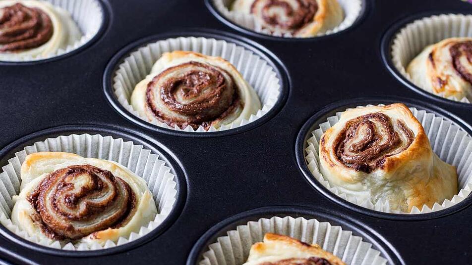 - Anschließend oben auf jedes Stück einen Esslöffel Nutella® geben. Den Backofen auf 200° Grad Umluft stellen.