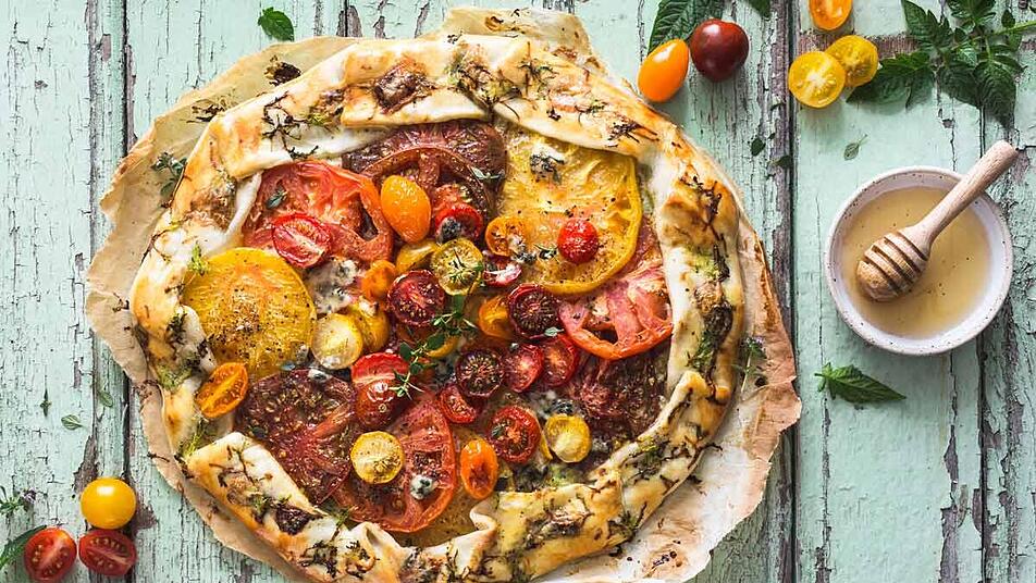 - Die Tomaten-Tarte rund 30 bis 35 Minuten im Ofen backen und anschließend warm oder kalt genießen.