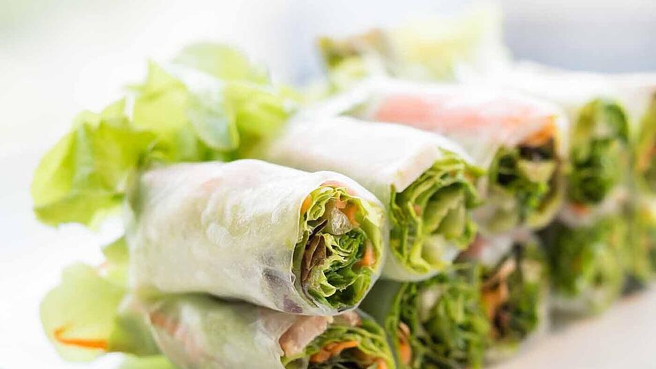 - Nun warmes Wasser in einen flachen Teller mit Rand füllen. Hier hinein kommen nacheinander die Blätter des Reispapiers, um sie einzuweichen. Die Blätter einzeln in die Schüssel legen und etwa 20 bis 30 Sekunden darin. Das Papier sollte nun flexibel sein. Die Blätter immer direkt füllen, denn wenn sie länger liegen, werden sie wieder hart.