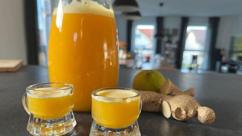 - Anschließend abfüllen und im Kühlschrank aufbewahren. Dort hält er sich für einige Tage. Wer den Shot ganz fein mag, filtert den Saft durch ein feines Sieb!