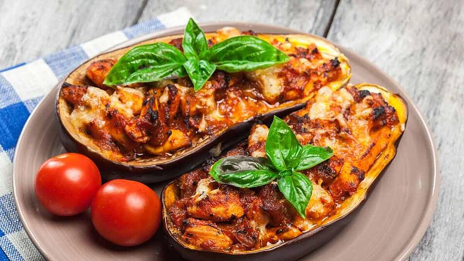 - Die Auflaufform nun zum Überbacken für 30 Minuten in den vorgeheizten Backofen geben. Die gefüllten Auberginen können schließlich mit der übrigen Soße und z.B. Reis serviert werden.
