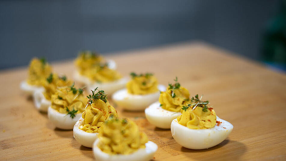 - Zum Schluss die Eier mit Kresse und etwas Paprikapulver bestreuen und kalt stellen.