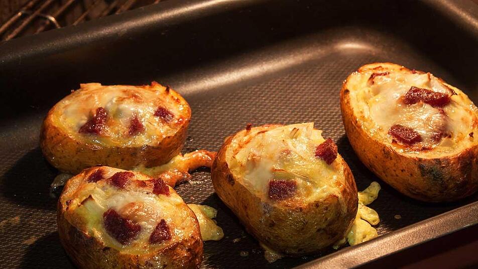 - Zum Schluss das Gemisch in die Kartoffeln füllen und im Ofen bei ca. 220°C 15 Minuten lange überbacken. Tipp: Spare am besten nicht zu sehr mit der Füllung, ansonsten wird das Endergebnis zu trocken!