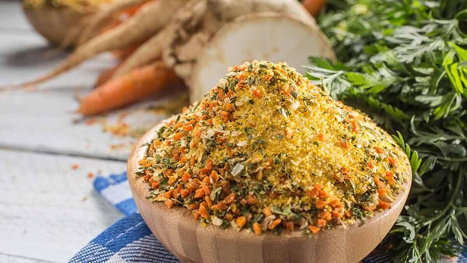 - Nun noch Salz hinzufügen. Die Masse gegebenenfalls nochmal pürieren und in ein Glas füllen. Das Rezept ergibt etwa 250 g Pulver.