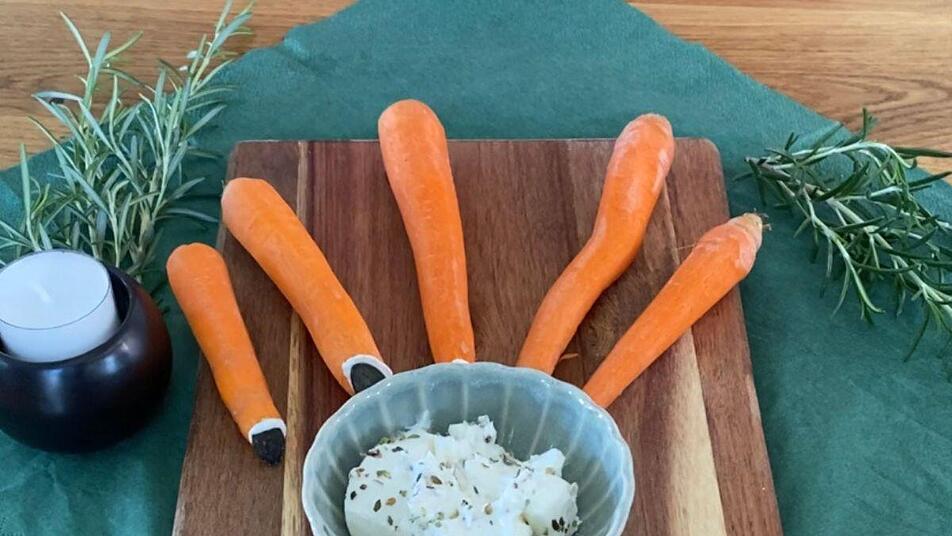 - In einer Schüssel Frischkäse mit Kräutern, Salz und Pfeffer verrühren. Zusammen mit den Finger-Karotten in einer Dip-Schale servieren. Happy Halloween!