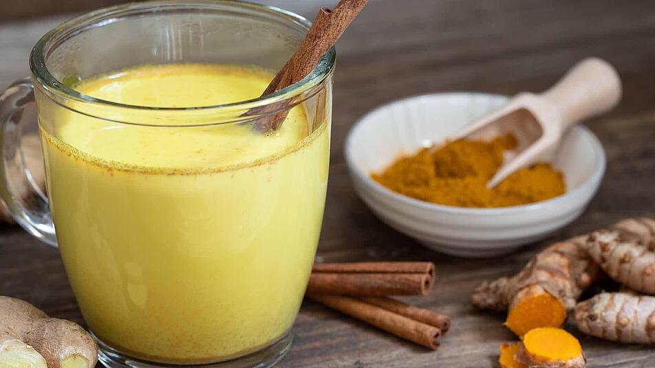 - Nun die Milch in einem Topf erhitzen und nach Belieben ein bis zwei Teelöffel der Kurkuma-Ingwer-Paste hinzugeben. Kräftig umrühren und mit Pfeffer oder Zimt abschmecken. Besonders gut macht sich auch Milchschaum auf dem Getränk.
