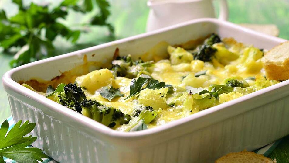 - Anschließend lässt du den Auflauf für 20 Minuten auf mittlerer Schiene backen. Streue nach Ablauf der Zeit den geriebenen Käse über den Auflauf und lasse alles noch einmal für circa 15 Minuten weiterbacken.