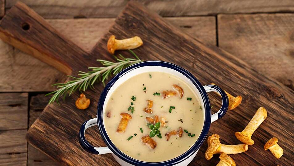 - Die beiseite gestellten Pfifferlinge in einer kleinen Pfanne mit etwas Butter anbraten. Die Suppe in Schalen oder Teller füllen, die gebratenen Pilze darauf geben und mit frischer Petersilie oder Schnittlauch garnieren.