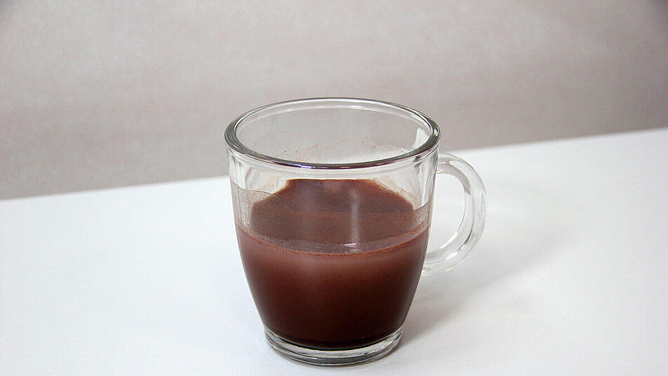 - Zuerst Milch, Kakaopulver und Zucker in ein Glas geben.