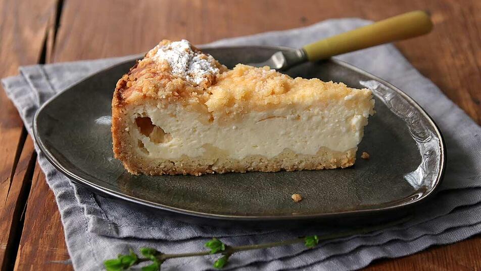 - Den restlichen Teig nun über die Creme krümeln und den Käsekuchen im vorgeheiztem Backofen bei 175° Ober-/Unterhitze für etwa 50 Minuten backen, bis die Streusel goldbraun und knusprig sind. Den fertigen Kuchen abkühlen lassen und anschließend genießen.