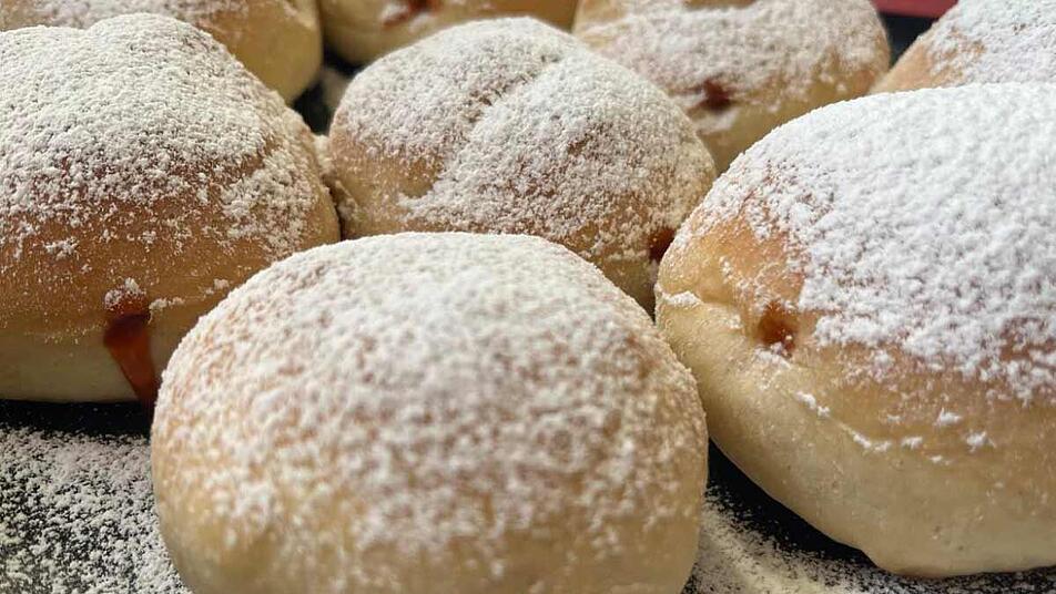 - Den Backofen auf 180 Grad Ober-Unterhitze vorheizen. Sobald der Ofen warm ist, die Krapfen auf die mittlere Schiene des Ofens schieben und im Backofen für circa 13 Minuten goldbraun backen. Anschließend das Blech aus dem Ofen nehmen und die Krapfen abkühlen lassen.