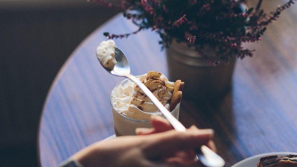 - Währenddessen die Sahne steif schlagen und zusammen mit dem Lebkuchen zur Schokolade geben.