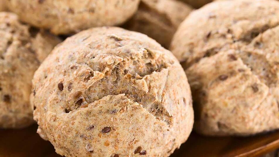 - Nach der Wartezeit Brötchen aus dem Teig formen. Dabei könnt ihr die Größe ganz nach eurer Vorliebe bestimmen. Die Brötchen dann auf ein mit Backpapier ausgelegtes Blech legen und Leinsamen aufdrücken.