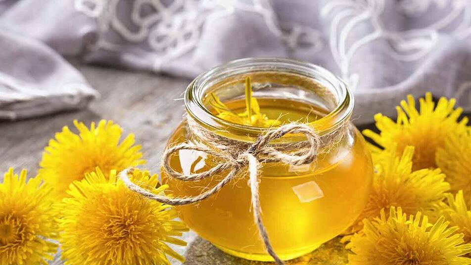 - Das Grün von den Löwenzahnblüten entfernen. Nur die gelben Blätter auslösen. Die Hälfte der Blätter (150 g) mit 800 ml Wasser in einem Topf aufkochen, 5 Minuten kochen lassen und gelegentlich umrühren. Danach vollständig abkühlen lassen.