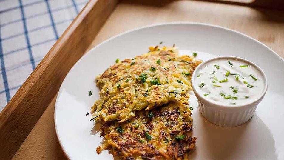 - Öl in einer Pfanne erhitzen. Den Teig portionsweise mit einem Esslöffel hineingeben und etwas platt drücken. Die Puffer von beiden Seiten anbraten, bis sie etwas braun sind.