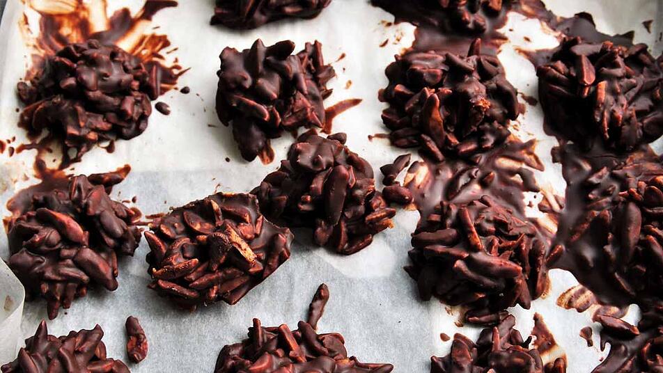 - Die gerösteten Mandeln zur Kuvertüre dazugeben und gut mischen. Anschließend mithilfe von zwei Teelöffeln kleine Häufchen formen und auf das Backblech setzen. Abkühlen lassen und genießen. Das Rezept ergibt etwa 20 Stück.